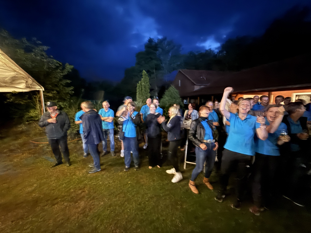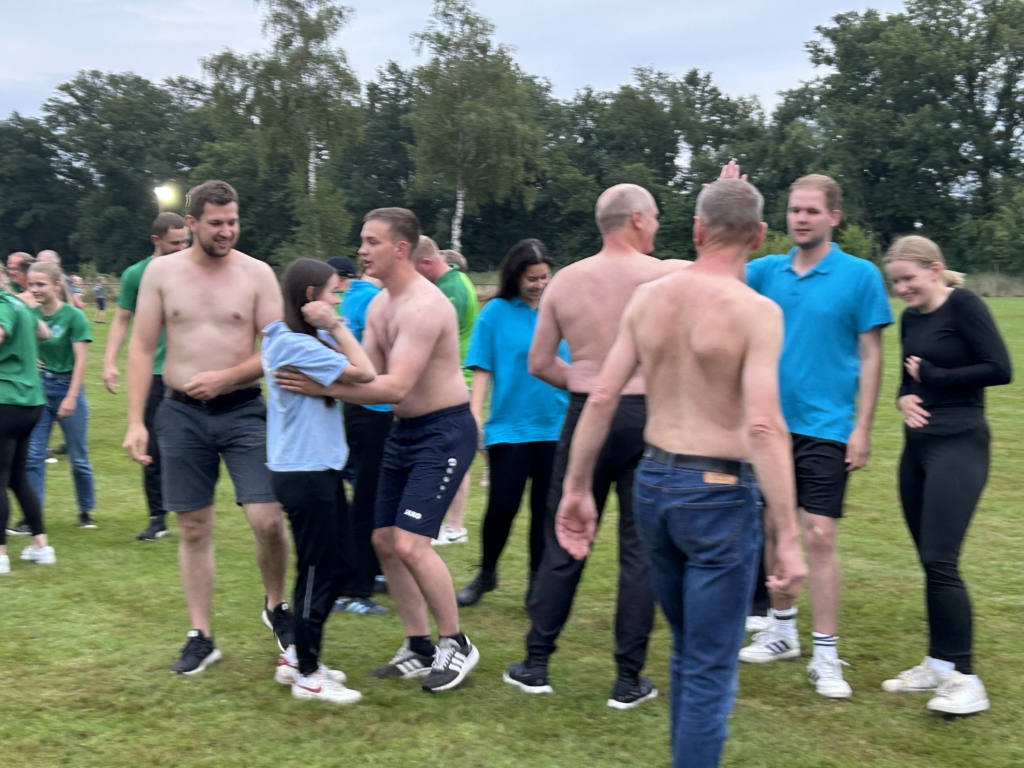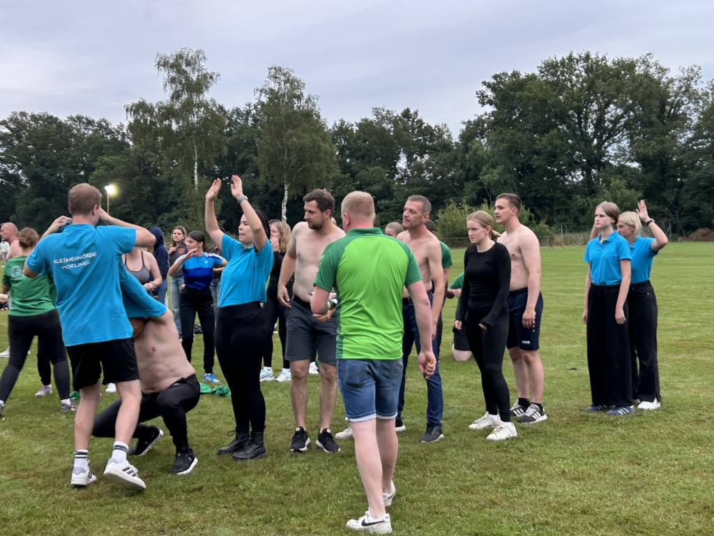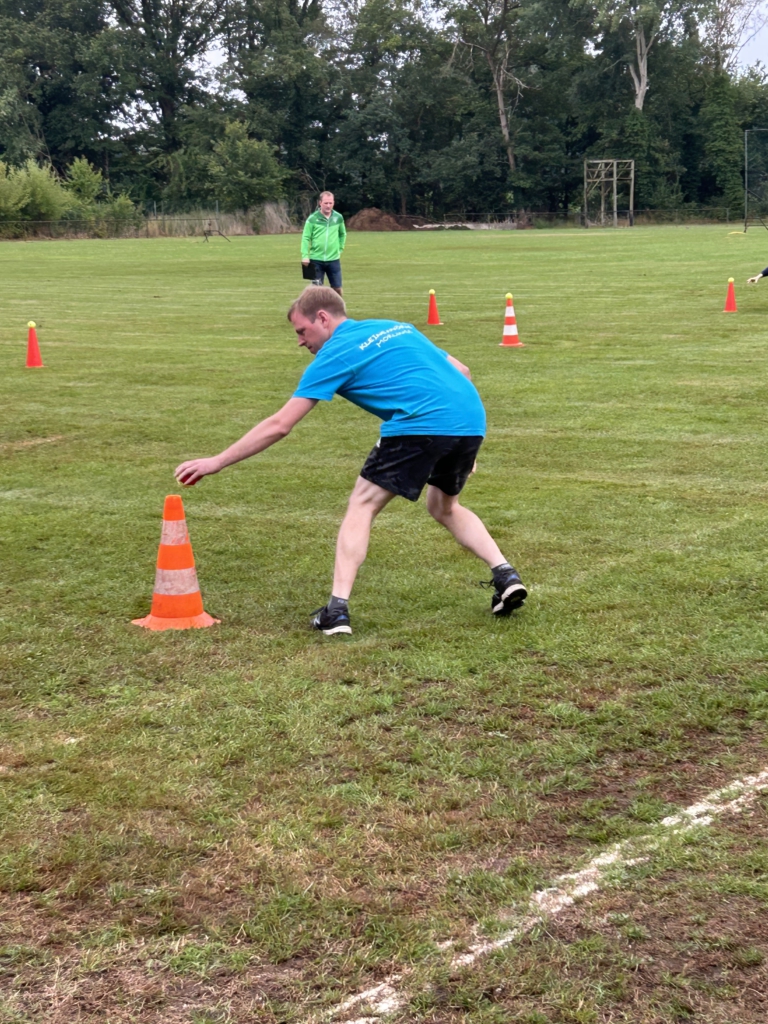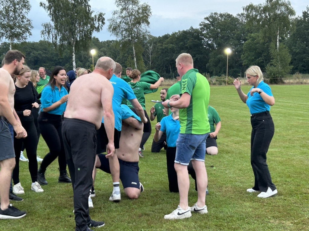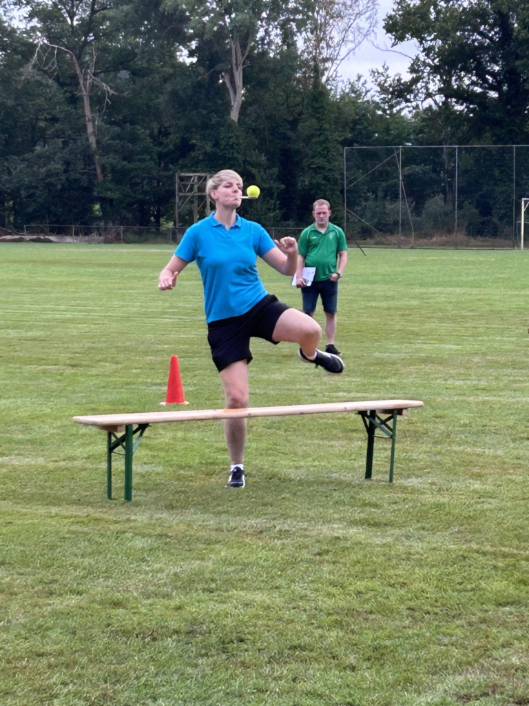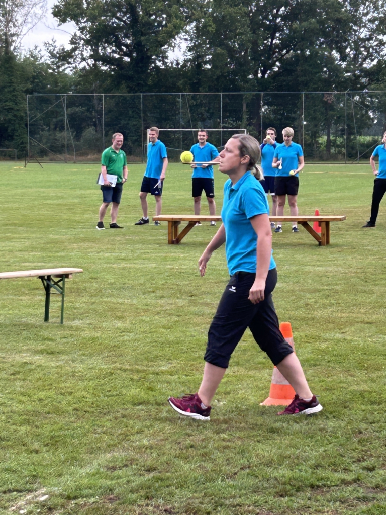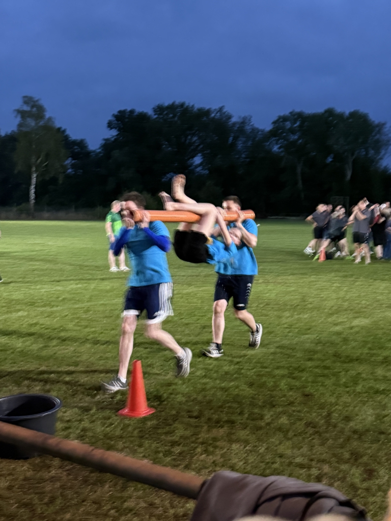 Beim ersten Teil der Dorfmeisterschaften 2025 hat sich das Orga-Team um die Familien Siemann, Sander und Reckweg wieder lustige, originelle und nervenaufreibende Spiele einfallen lassen. Es gab sechs Spiele zu bewältigen. Egal, ob es darum ging, die Bügelverschlüsse auf Bierflaschen zu schnipsen, sich mit einem Partner Rücken an Rücken mit Frischhaltefolie eingewickelt und einen Tennisball mit Schläger hochhaltend fortzubewegen, Tennisbälle mit einem Handtuch in ein kleines Fußballtor zu schleudern, als Menschenschlange von 10 Leuten durch einen Hula-Hoop-Reifen zu klettern, ein Fahrrad samt Cruiser rückwärts (!) durch einen Parkour zu manövrieren oder Wasser aus einer an den Schultern hängenden Gießkanne in einen Eimer zu befördern, es wurden immer mal wieder Nerven strapaziert und zugleich wurde auch herzlich gelacht.